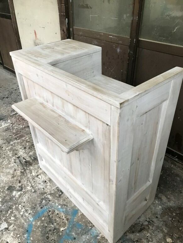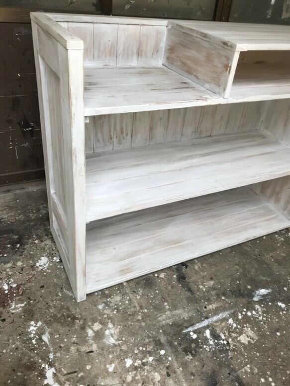 【レジ用凹みシェルフ付】ホワイトシャビー☆カウンターテーブル【1200】★店舗☆