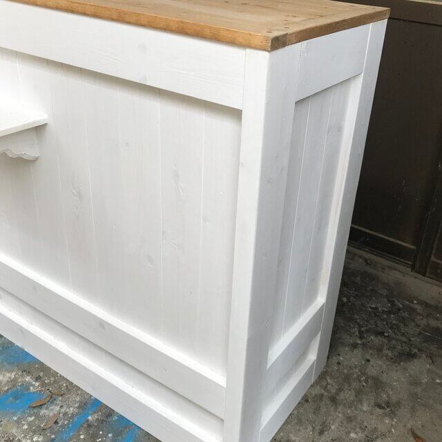 ■無垢板を使い天然の風合いを生かしたカウンターでホワイトで可愛い仕上がりです。